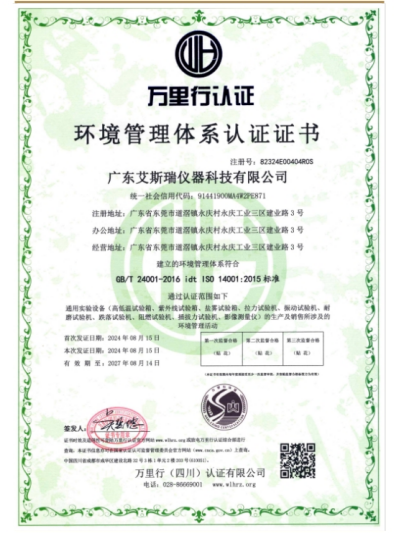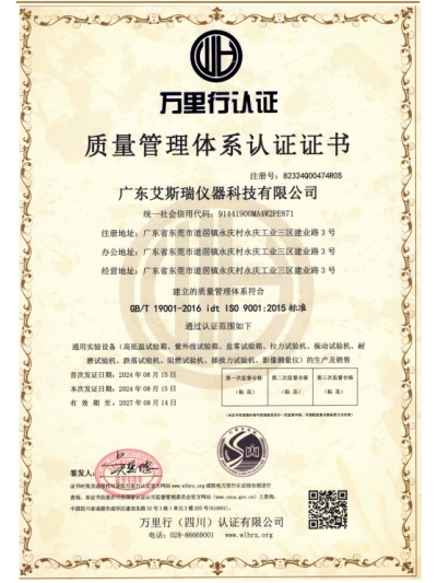 廣東艾斯瑞儀器科技有限公司 廣東艾斯瑞儀器科技有限公司在東莞道滘投產(chǎn),廠房面積38000平方,是一家擁有著多年試驗機研發(fā)、設(shè)計、生產(chǎn)的廠家,經(jīng)驗雄厚并與國內(nèi)外知名企業(yè)合作,產(chǎn)品遠(yuǎn)銷世界多個國家和地區(qū)。 產(chǎn)品符合標(biāo)準(zhǔn):ISO、AATCC、ASTM、DIN、EN、GB、BS、JIS、ANSI、UL、TAPPI、IEC、VDE….均可用,產(chǎn)品廣泛適用于:科研單位、質(zhì)檢機構(gòu)、大專院校以及電子電器、涂料、箱包、膠粘、手機、紡織、玩具、橡膠、塑料、金屬、電線電纜、制鞋、皮革、包裝、建材、石化、航空…等產(chǎn)業(yè),為材料開發(fā)、物性試驗、教學(xué)研究、品質(zhì)管理、進(jìn)料檢驗等必備。 艾斯瑞儀器將建立起遍布亞、美、歐三大洲的專業(yè)研發(fā)網(wǎng)絡(luò),建立健全創(chuàng)新機制及知識產(chǎn)權(quán)管理平臺,為公司發(fā)展奠定基礎(chǔ),從而成為國內(nèi)企業(yè)中產(chǎn)品馳騁全球的先導(dǎo)者。 公司自成立以來堅決以品質(zhì)為核心,精美外觀設(shè)計為中心,以及認(rèn)真務(wù)實的工作精神,更好服務(wù)于廣大客戶并贏得良好的口碑。我們將一如既往,堅持以“誠信經(jīng)營”為本,“品質(zhì)至上”為主,服務(wù)至上為宗旨,用創(chuàng)新的思路和技術(shù)設(shè)計產(chǎn)品,保證優(yōu)良的品質(zhì),品質(zhì)管理、進(jìn)料檢驗等必備。